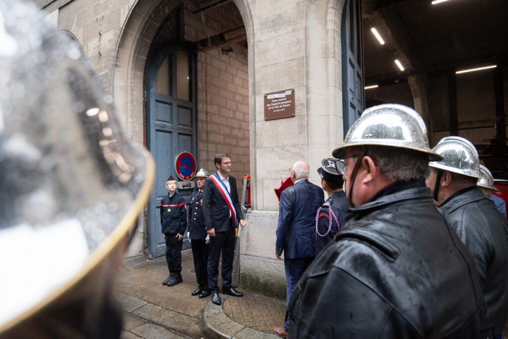 La matinée a été marquée par une cérémonie officielle avec le dévoilement d’une plaque commémorative en hommage au poste central historique des sapeurs-pompiers de Rouen, actif de 1896 à 1973. Cette cérémonie s’est déroulée en présence de Nicolas Mayer-Rossignol, maire de Rouen et président de la Métropole Rouen Normandie, de Gérard Colin, représentant André Gautier, président du conseil d’administration du Sdis 76, de Maxime Crambert, représentant la Direction départementale de la sécurité publique, ainsi que du colonel Jean-Christophe Delbasse Leflon, directeur départemental par intérim et chef de corps du Sdis 76.