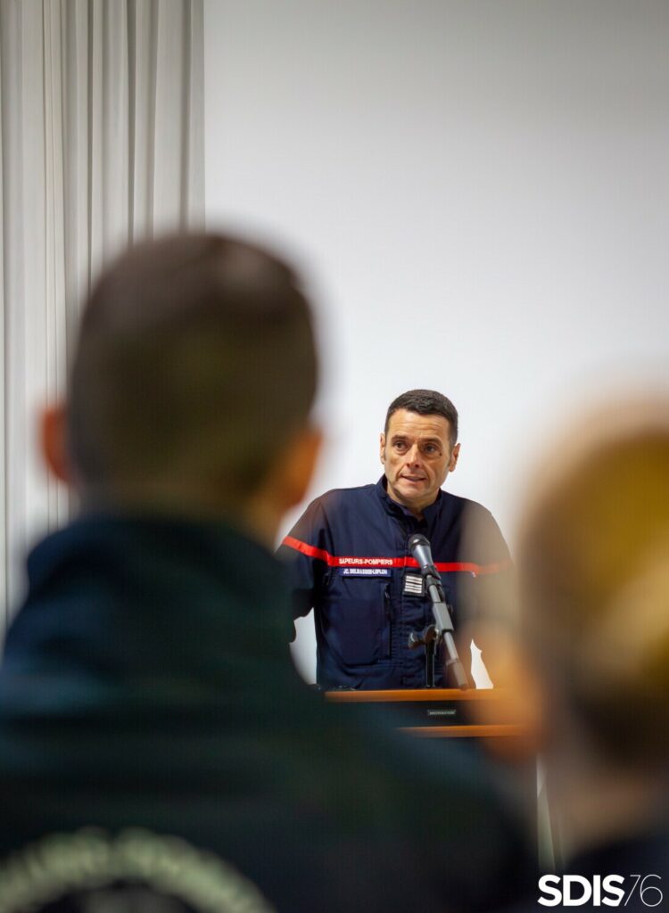 Le Directeur départemental adjoint par intérim, le colonel Jean-Christophe Delbassée Leflon, a tenu à saluer leur présence par quelques mots de bienvenue, mettant à l’honneur leur choix de s’engager pour la sécurité des habitants de la Seine-Maritime.